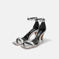 Simple strappy sandals have a 7cm heel for a mature look. These sandals have a trendy square toe and an ankle strap that adds stability, making them great for showing off your beautiful legs.